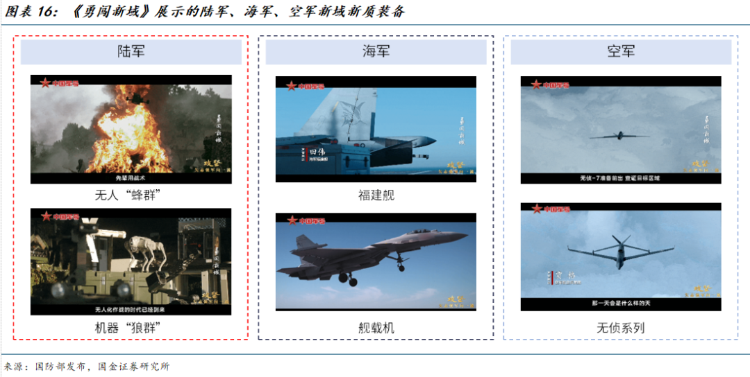 《攻坚》宣传片作为官方释放的信号,突出“十四五收官攻坚”主题,结合“建军百年目标”和“十五五规划”布局,重点展示新域新质装备。《攻坚》第四季《勇闯新域》明确指出,传统作战指挥的思维理念已满足不了智能化、无人化的作战需求,所以创新驱动是攻坚向前的必由之路。片中展示了陆军无人“蜂群”、机器“狼群”,海军福建舰和舰载机,空军“无侦”系列无人机等新域新质装备。