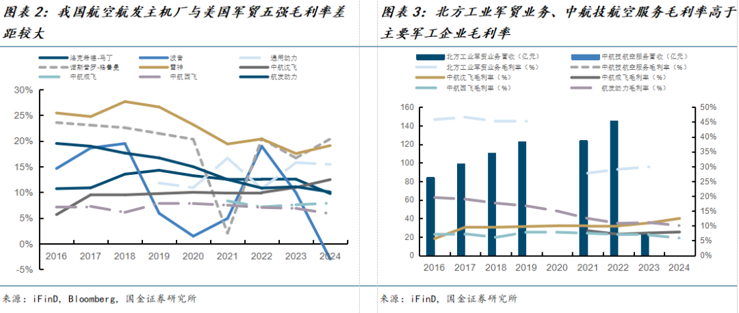 印巴冲突后打开军贸市场,引发军工板块价值重估。1)地缘冲突是全球军贸规模增长的主要催化剂,2000-2024年间,“9·11”事件后的“反恐战争”“阿拉伯之春”、叙利亚战争、“克里米亚危机”、俄乌冲突等地缘冲突催生旺盛军购需求,2022年全球军贸总量增速达29%。今年以来,印巴冲突、以伊冲突持续演绎,或将催生旺盛军购需求。2)军贸或将打开我国军工企业盈利能力天花板:当前美国军工企业洛马、波音、通用动力、诺格、雷神等毛利率明显高于我国航空主机厂,同时我国北方工业军贸2016-2019毛利率45.19%-46.58%、中航技航空服务2021-2023毛利率27.73%-29.84%,均远高于航空航发主机厂毛利率,我们认为,未来随着军贸出口规模的打开,军工企业在军贸产品成本、质量、进度控制重要程度越来越高,利润分配或将向军工企业倾斜,军工企业的整体盈利能力亦将向上突破。