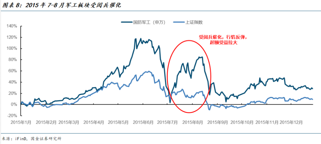 二、历史复盘:2015年和2019年两次阅兵催化下,军工跑出超额收益